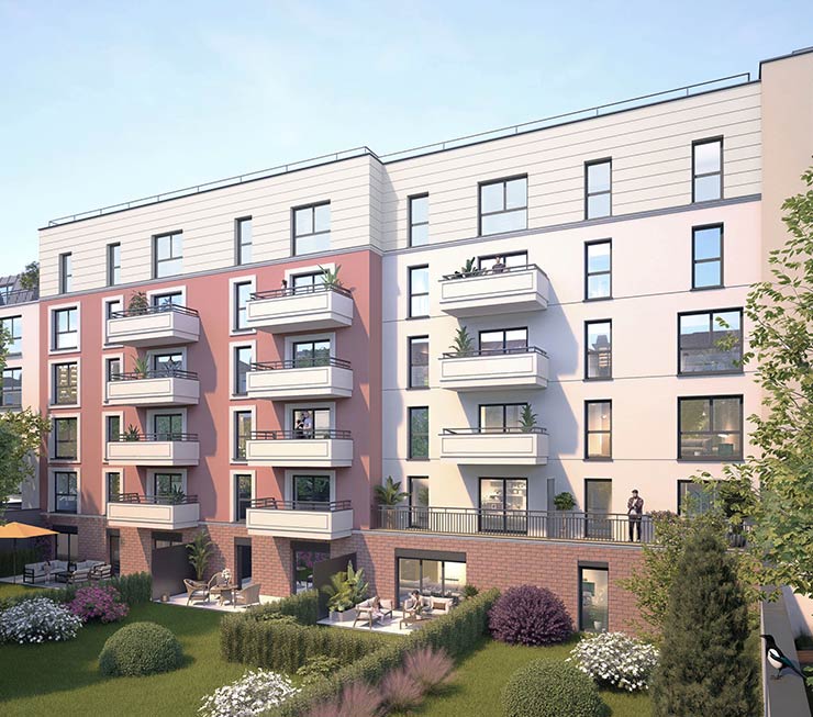 Les pièces de vie prolongées par de beaux balcons, de grandes terrasses ou de jardins privatifs se transforment en espaces à vivre, une oasis de tranquillité.